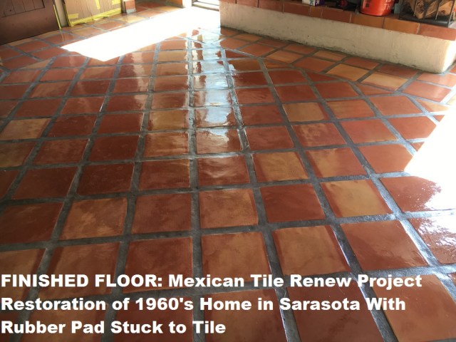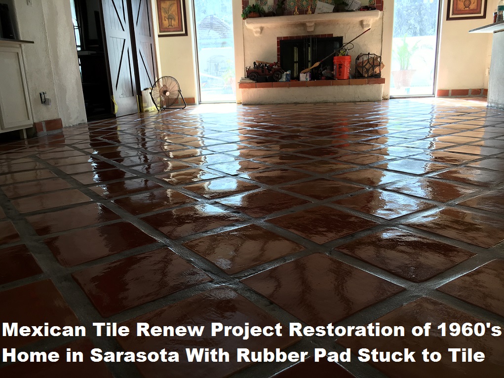 ‘Mexican Tile Renew’ Restoration Project of 1960’s Home in Sarasota With Rubber Pad Stuck to Tile. Better Call Vel at Mexican Tile Renew 941-926-7444. MEXICAN TILE RENEW: Clean Mexican-Saltillo Tile |Seal Mexican-Saltillo Tile |Restore Mexican Tile Sarasota Fl. Mexican Tile Renew For Over 22 Years, (941) 926-7444., Sarasota, FL 34233 http://www.mexicantilerenew.com
