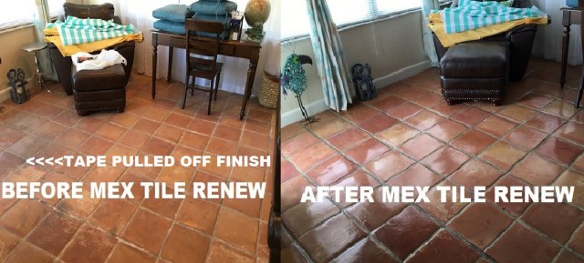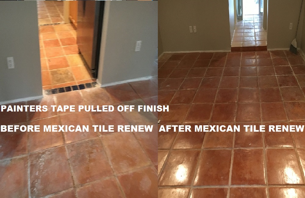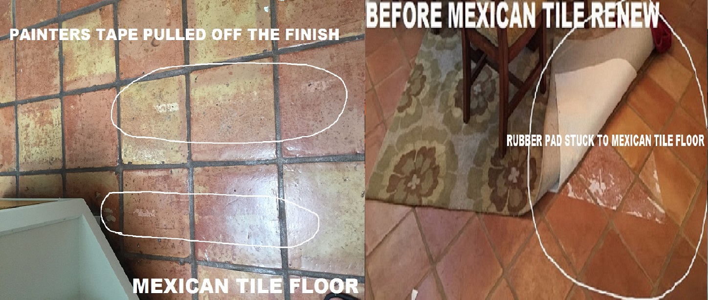 PAINTERS TAPE, RUBBER PADS AND VINEGAR WILL ALL RUIN THE FINISH ON YOUR MEXICAN TILE FLOOR, MEXICAN TILE RENEW CAN FIT IT, AND SHOW YOU HOW TO MAINTAIN YOUR RENEWED MEXICAN TILE FLOOR. BETTER CALL VEL AT MEXICAN TILE RENEW 941-926-7444