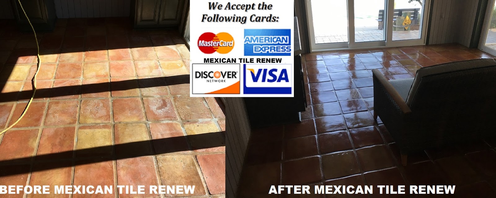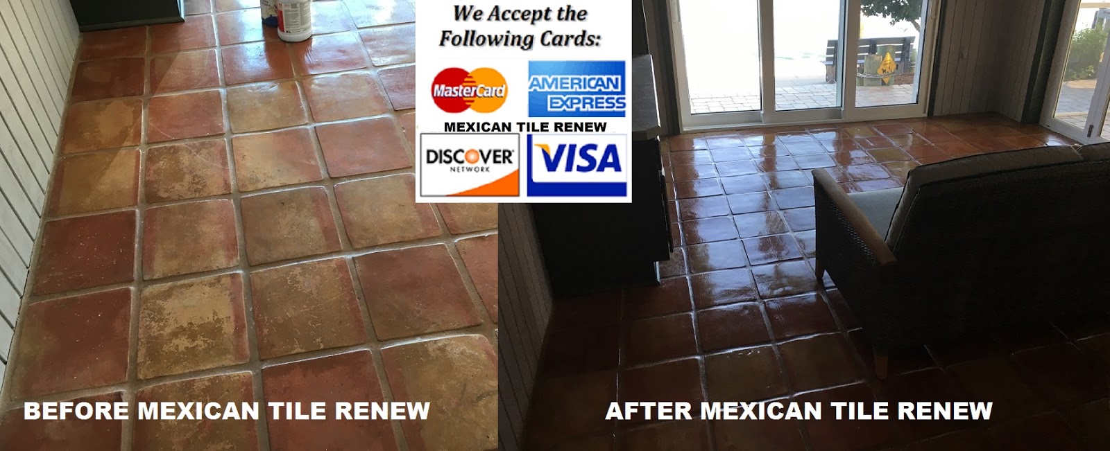 MEXICAN TILE RENEW PROJECT AT THE BEACH ON CASEY KEY FLORIDA. Mexican tile aka Saltillo tiles are handmade tiles made of clay. True Saltillos tiles are very porous, sun dried and low fired tile. New, unsealed, Saltillo tiles are very porous and subject to surface wear and staining if not properly sealed and maintained. With proper sealing and ongoing maintenance, the Saltillo tile will be more likely to enjoy a long lasting, beautiful and durable appearance.
