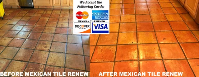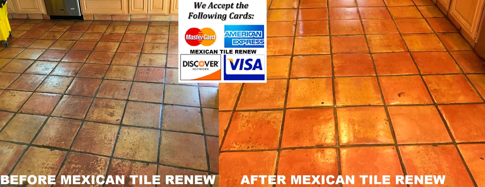 MEXICAN TILE RENEW PROJECT IN PALMETTO FL WHERE VINEGAR WAS USED TO CLEAN THE FLOOR, NEVER USE VINEGAR TO CLEAN MEXICAN TILE FLOORS. The floors should be swept often. The combination of sand and leather soles has the same effect as sandpaper. The floor will be more difficult to clean and keep clean.