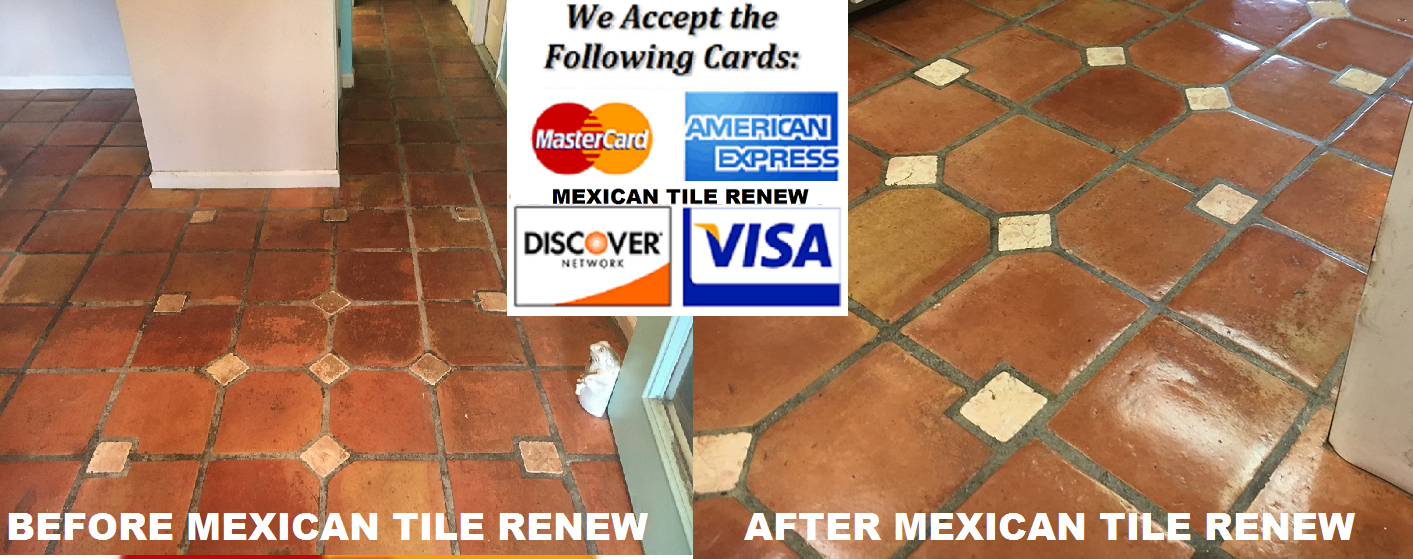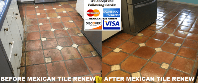 MEXICAN TILE RENEW PROJECT IN NORTH PORT FL USE SOAP AND WATER TO CLEAN YOUR TILE. Vinegar used as a floor cleaner with Mexican tile will only ruin the finish and discolor the grout.