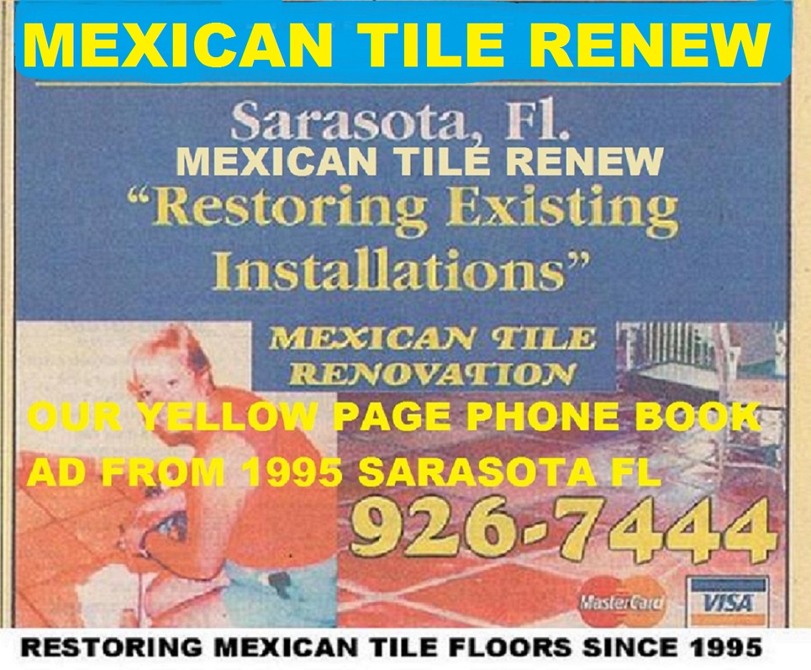 Mexican Tile Renew services Sarasota County, Manatee County, Pinellas County, Southern Hillsborough County, Charlotte County and Lee County and has since 1995, CALL 941-926-7444. MEXICAN TILE RENEW: Clean Mexican-Saltillo Tile |Seal Mexican-Saltillo Tile |Restore Mexican Tile Sarasota Fl. ‘Mexican Tile Renew’ (941) 926-7444., Sarasota, FL 34233 over 23 years in business, see our website at http://www.mexicantilerenew.com