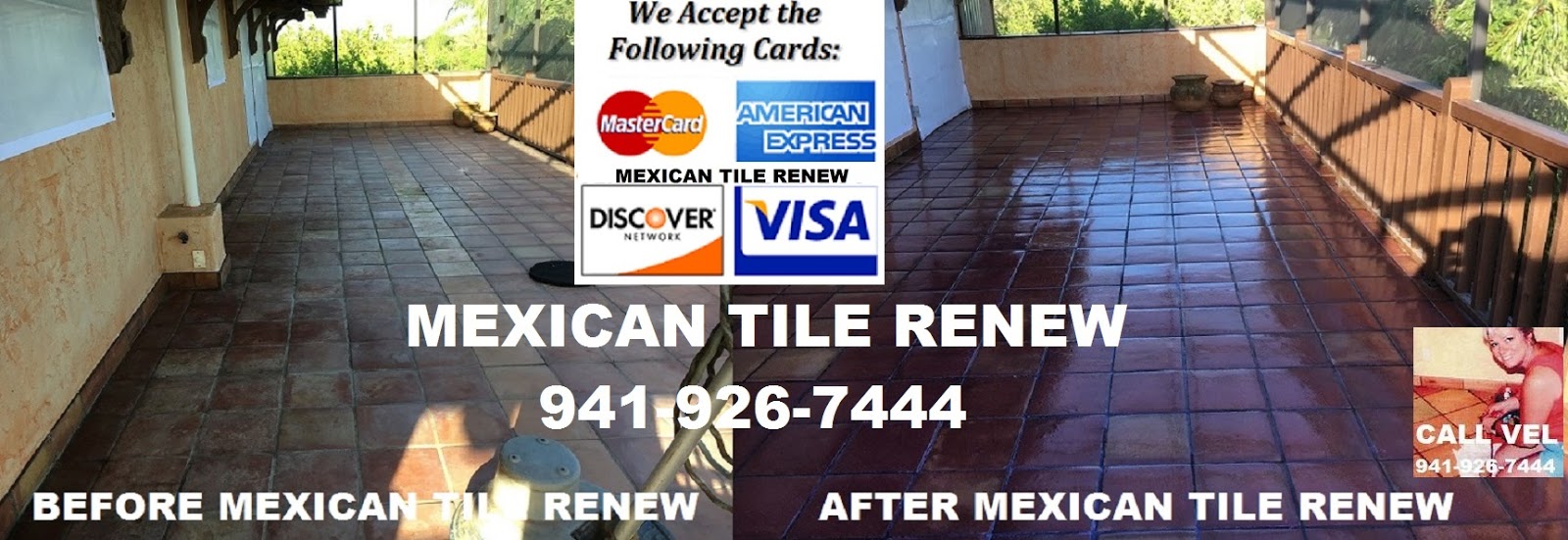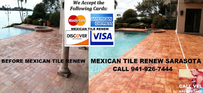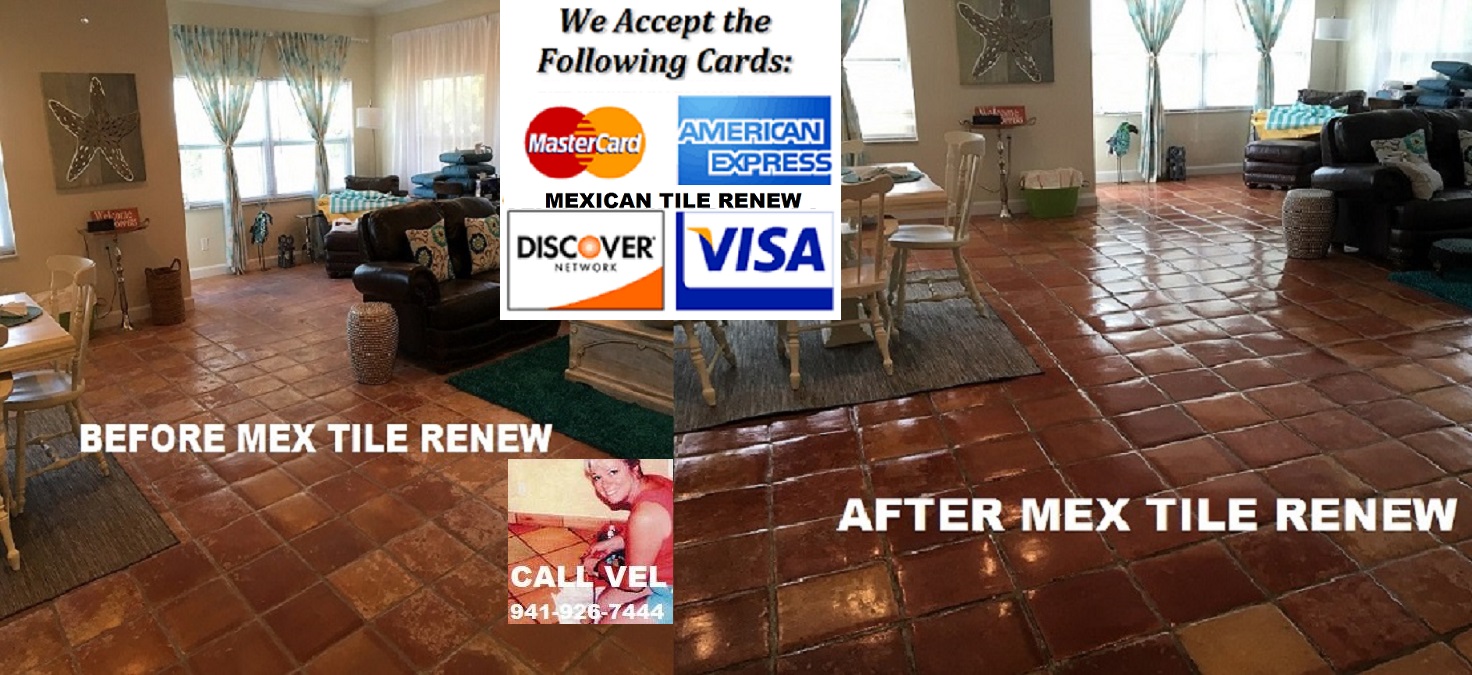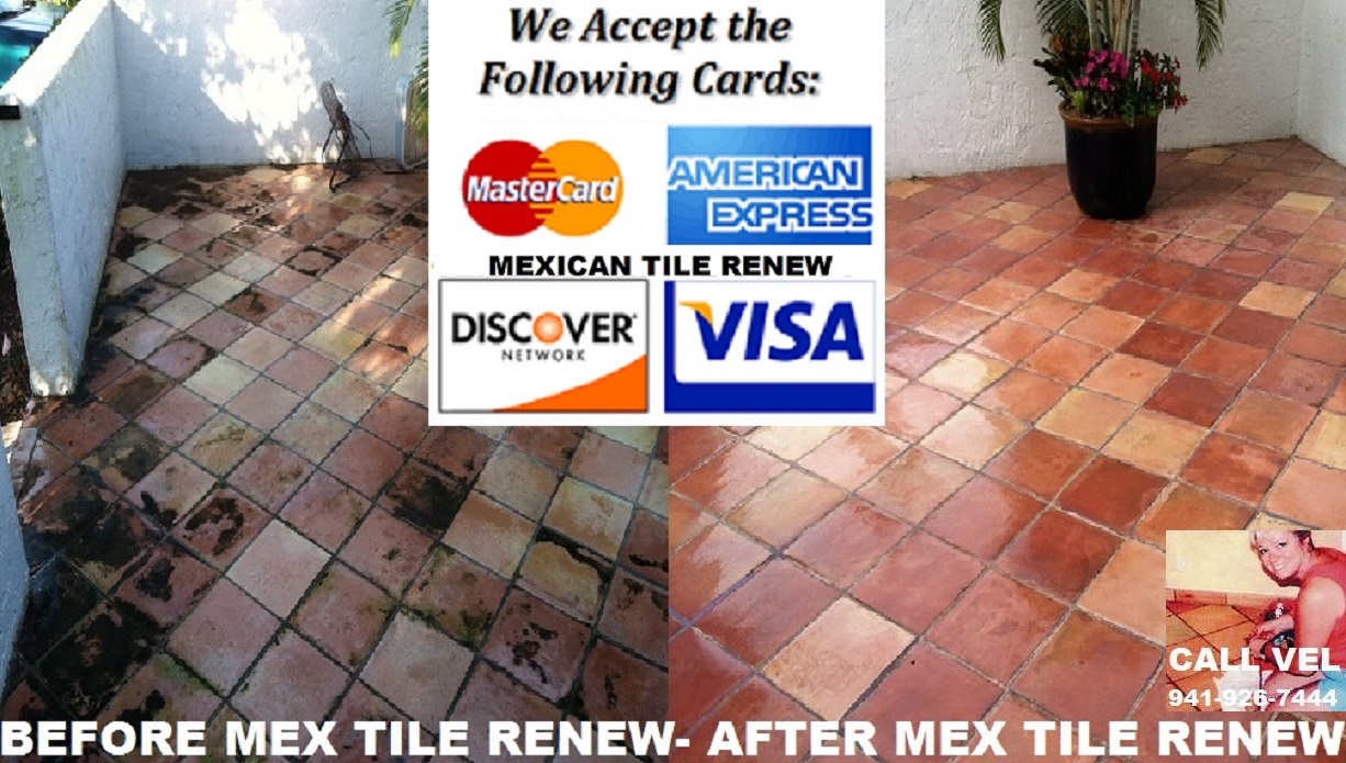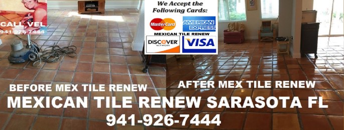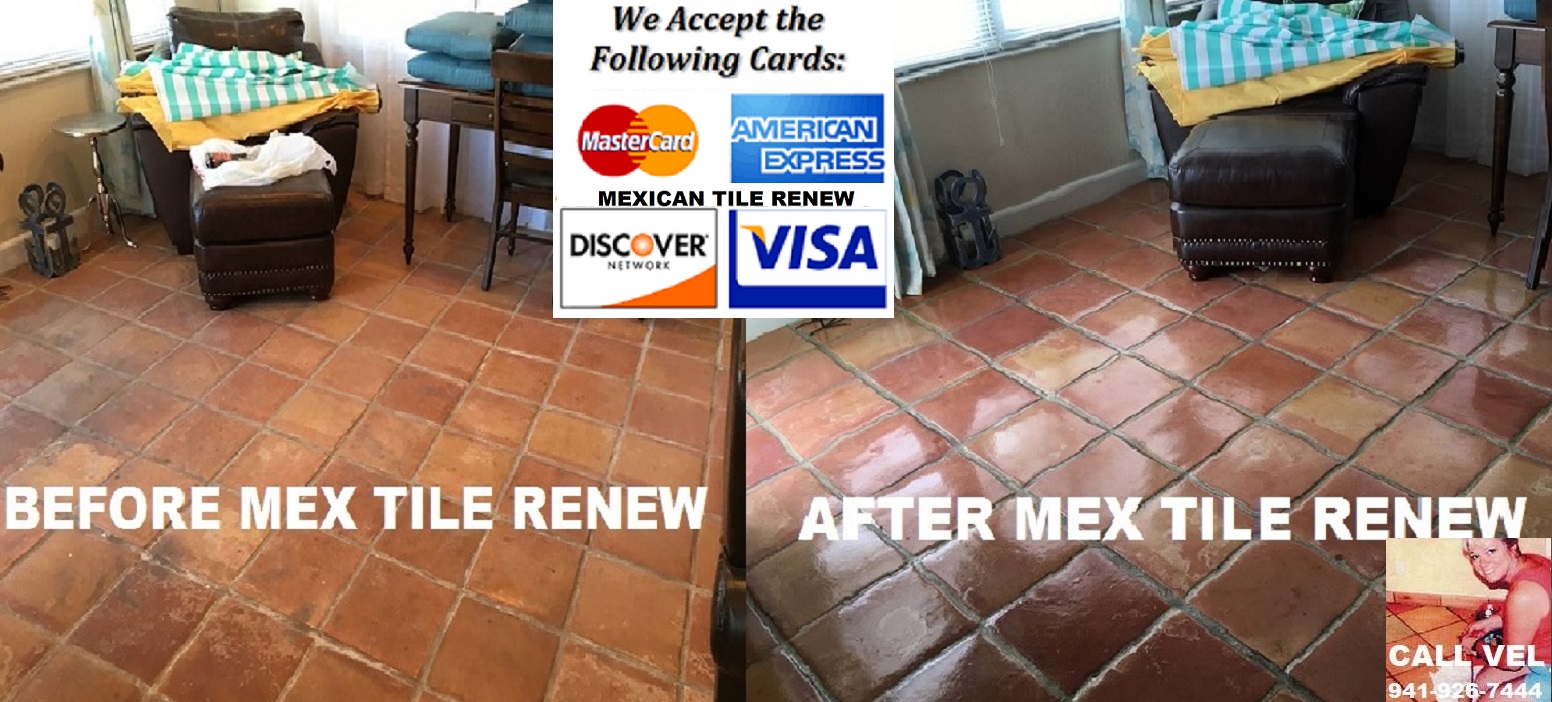 Mexican Tile Renew services Sarasota County, Manatee County, Pinellas County, Southern Hillsborough County, Charlotte County and Lee County and has since 1995, CALL 941-926-7444. MEXICAN TILE RENEW: Clean Mexican-Saltillo Tile |Seal Mexican-Saltillo Tile |Restore Mexican Tile Sarasota Fl. ‘Mexican Tile Renew’ (941) 926-7444., Sarasota, FL 34233 over 23 years in business, see our website at http://www.mexicantilerenew.com