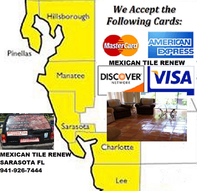 Mexican Tile Renew services Sarasota County, Manatee County, Pinellas County, Southern Hillsborough County, Charlotte County and Lee County and has since 1995 CALL 941-926-7444. Mexican Tile Restoration – Saltillo Tile Restoration.