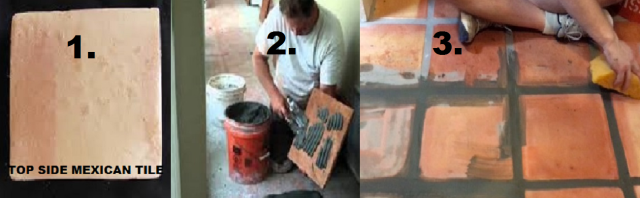 CLICK ON IMAGE ABOVE TO ENLARGE PHOTOS. Mexican tile is not Marble, is not Ceramic tile and is not Porcelain tile. Mexican tile has no glazed finish, the only protection for the clay tile is an applied sealer and Mexican tile must be stripped, cleaned and sealed at least every 8 or 9 years, it is and always will be very labor intensive.
