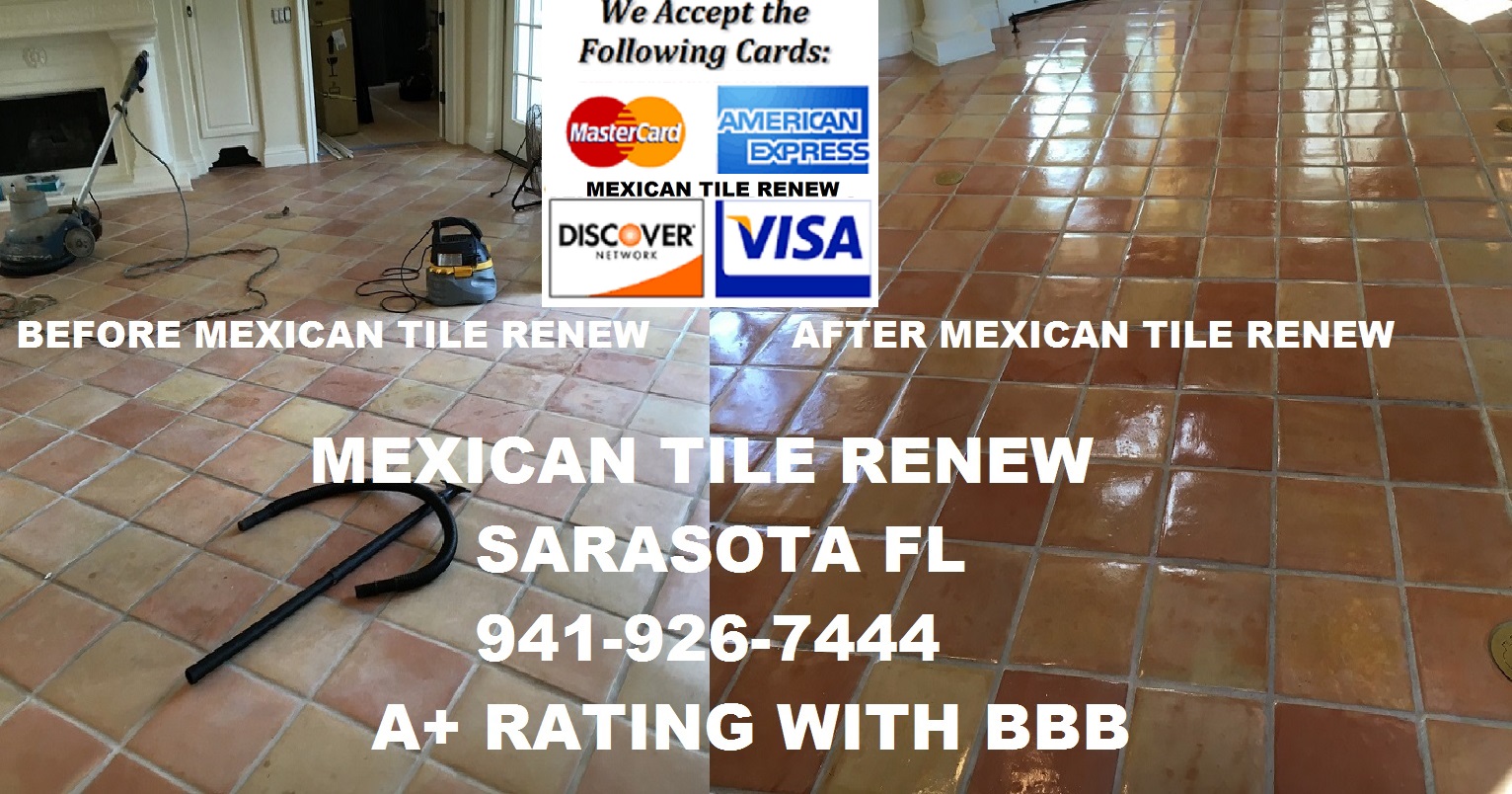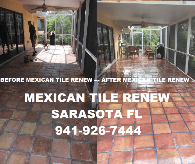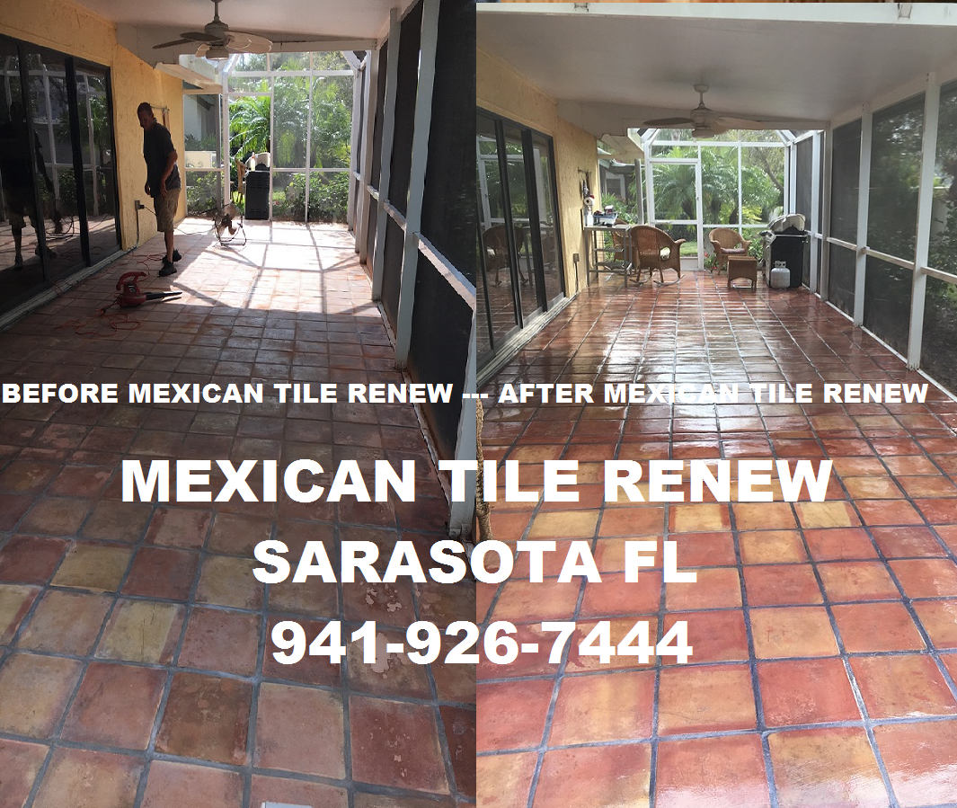 CLICK ON IMAGE ABOVE TO ENLARGE PHOTOS. ‘Mexican Tile Renew’ Sarasota Fl We Make Like New Your Saltillo Tile Floors, The Good, The Bad, and Just Plain Ugly Ones. We have been refinishing Mexican Tile floors in South West Florida since 1995.