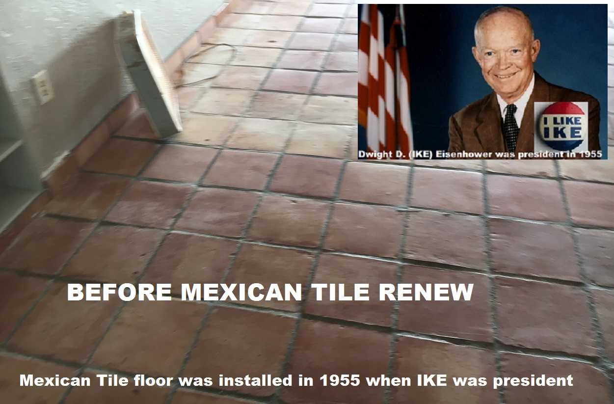 We Make Like New the Good the Bad the Old and Just Plain Ugly Floors. Mexican Tile Renew Project in Bradenton Fl on the River Where Mexican Tile Had Been Installed When Ike was President 64 Years Ago.