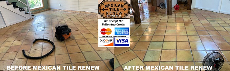 Maintenance of Your Mexican Tile Floors After You Have Had Floors Refinished is Easy Just Don’t Use Vinegar. One Picture is Worth a Thousand Words So Here Are Pics of Our Completed Tile Projects. Mexican Tile Renew Sarasota FL Celebrating 30 Years in Business A+ Rating With Better Business Bureau. After 30 years and over 3,000 Mexican Tile Renew projects in Florida we know a thing or two because we’ve seen a thing or two about Mexican Tile floors. Mexican Tile Renew Strip, Clean and Seal, Sarasota To St Pete Fl. CALL 941-926-7444. email mexicantilerenew@aol.com