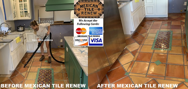 Maintenance of Your Mexican Tile Floors After You Have Had Floors Refinished by Us is Easy, Just Don’t Use Vinegar. One Picture is Worth a Thousand Words So Here Are Pics of Our Completed Tile Projects.