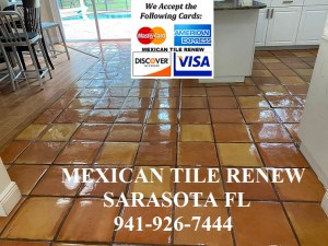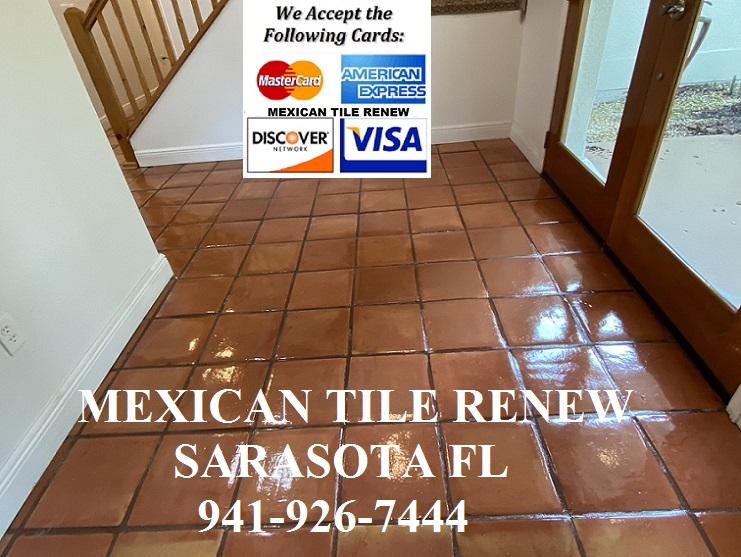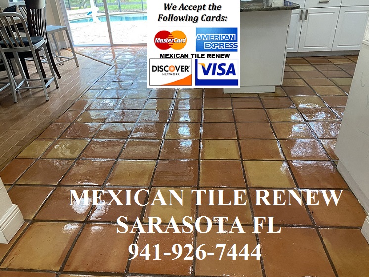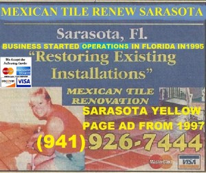Mexican Tile Renew Projects Since 1995 We Accept All Major Credit Cards. We have A+ Rating with the Better Business Bureau. Mexican Tile Renew Projects from Sarasota to Longboat Key to Bird Key to Siesta Key to Casey Key to Bradenton to Venice to Myakka River area to Englewood to Nokomis Fl restoring Mexican tile floors for over 29 years. We Make Like New the Good the Bad and Just Plain Ugly Floors. Call Vel at 941-926-7444