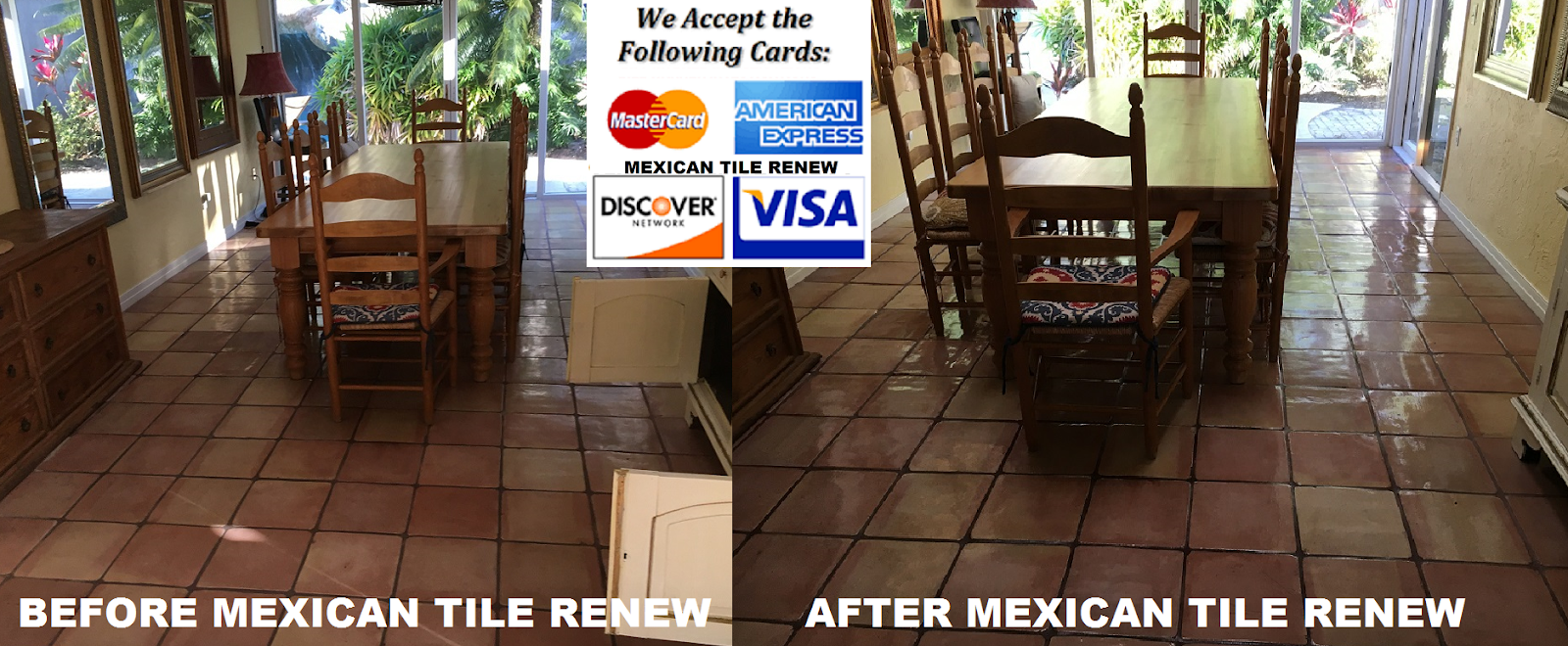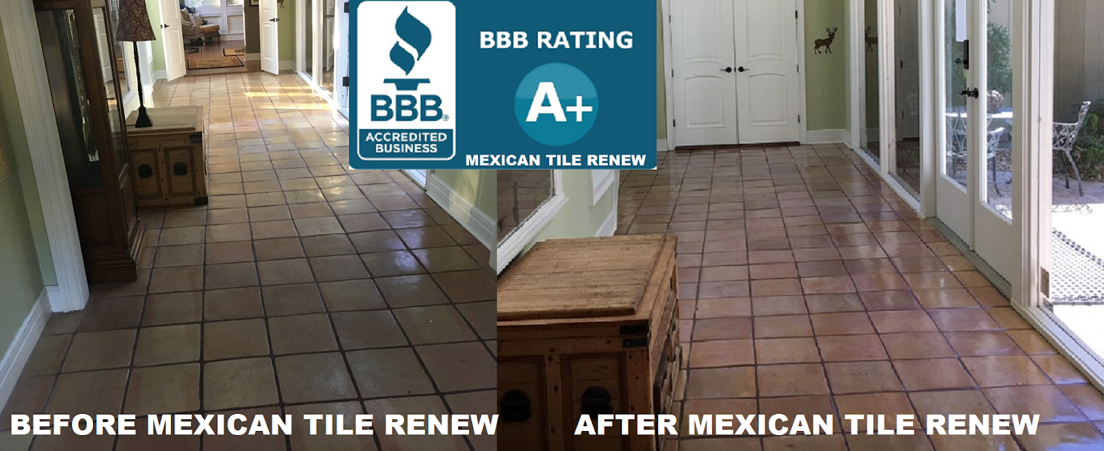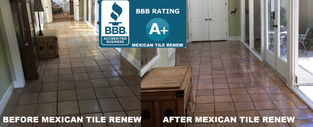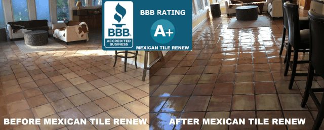 Mexican Tile Renew Project in Sarasota Fl Where Tile Had Not Been Refinished in Almost 40 Years. MEXICAN TILE RENEW: Clean Mexican-Saltillo Tile |Seal Mexican-Saltillo Tile |Restore Mexican Tile Sarasota Fl Better Business Bureau Approved. Mexican Tile Renew For Over 23 Years Has A+ Better Business Bureau (BBB) Rating. CALL 941-926-7444