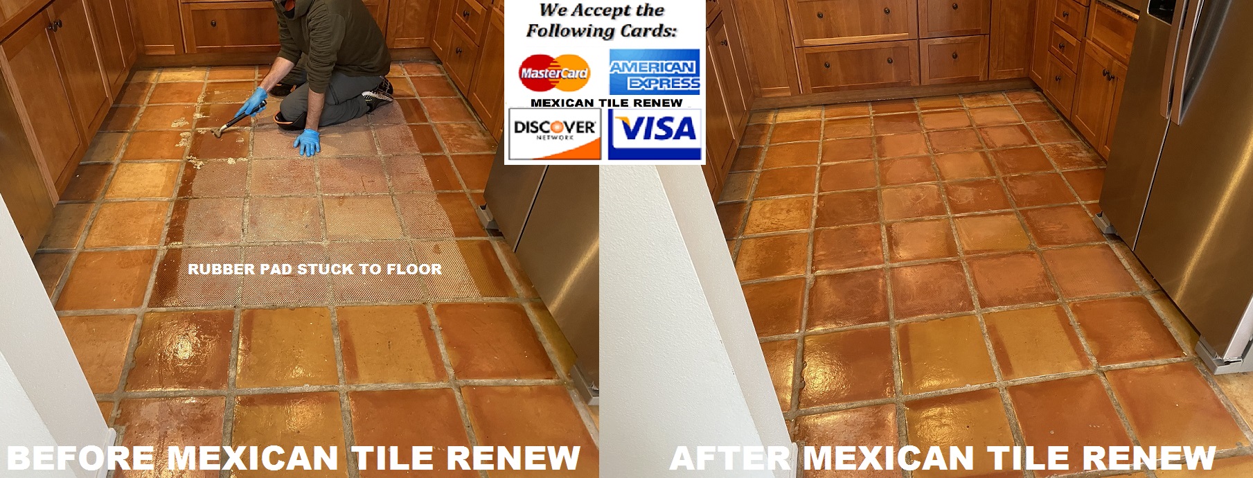 Mexican Tile Renew of Home In Sarasota Fl with Rubber Pads Stuck to The Tile Floor, very bad situation.