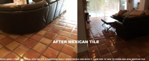Most Mexican tile renew projects are a one day endeavor. Our one and only job is to refinish your Mexican tile floor to a like new appearance. It aids in getting the project completed in a timely manner if furniture is removed from the work area and the A/C is kept at 70 degrees during the process to facilitate the drying of the tiles and the different costs of sealer. We Make Like New Your Saltillo Tile Floors, The Good, The Bad and Just Plain Ugly Ones.