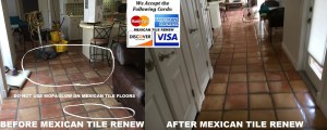 Mexican Tile Renew Cleans, Stains, Seals, Repairs, Rejuvenates, and Brightens Saltillo Floors Since 1995 in Southwest Florida. We Accept All Major Credit Cards, call 941-926-7444. Same phone number, same website http://www.mexicantilerenew.com/ same location and same owners for over 30 years.