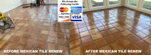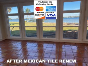 WE CLEAN AND RESEAL MEXICAN TILE FLOORS ST PETE TO SARASOTA TO PORT CHARLOTTE FL AND HAVE DONE SO SINCE 1995, ‘MEXICAN TILE RENEW’ CALL VEL 941-926-7444.