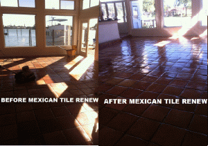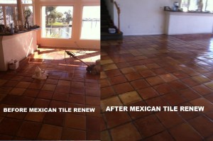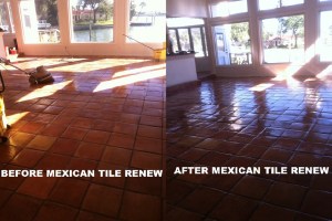 Mexican Tile Renew Project at a House On The Shore. Mexican Tile Renew strips off the old sealers on your Mexican Tile, cleans the Mex-tile and re-seals the Mex-tile to a beautiful like new appearance. CALL TOLL FREE 866-926-7444 or 941-926-7444