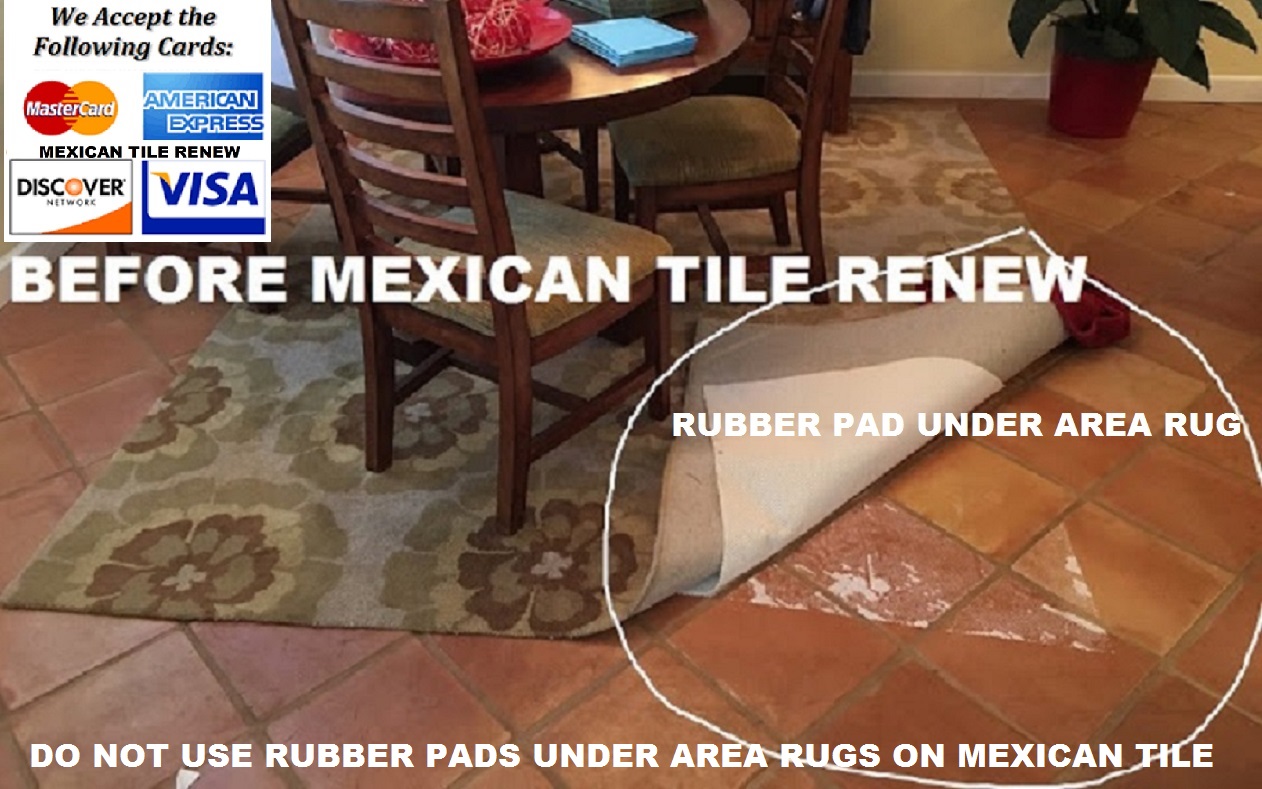 DO NOT USE RUBBER PADS UNDER AREA RUGS ON MEXICAN TILE: