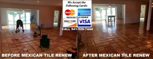 WE CLEAN AND RESEAL MEXICAN TILE FLOORS ST PETE TO SARASOTA FL AND HAVE DONE SO SINCE 1995, ‘MEXICAN TILE RENEW’ CALL VEL 941-926-7444.
