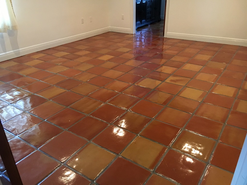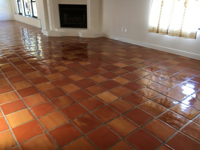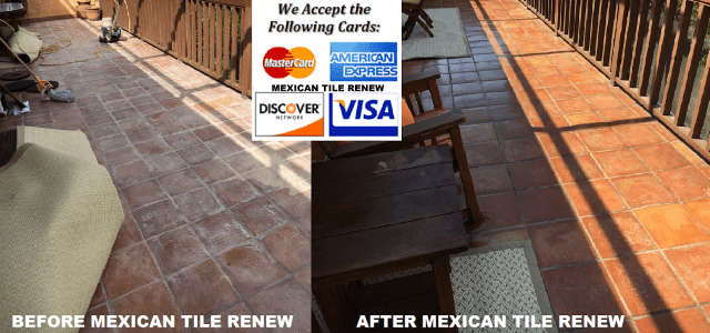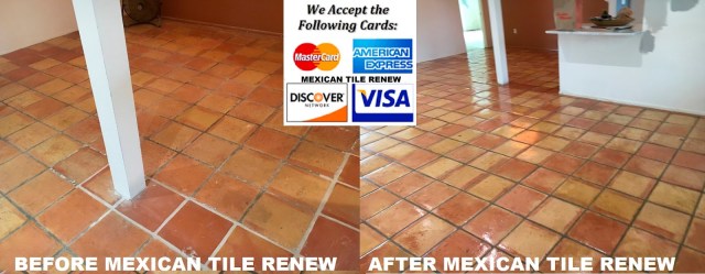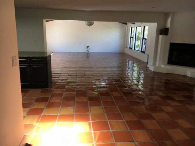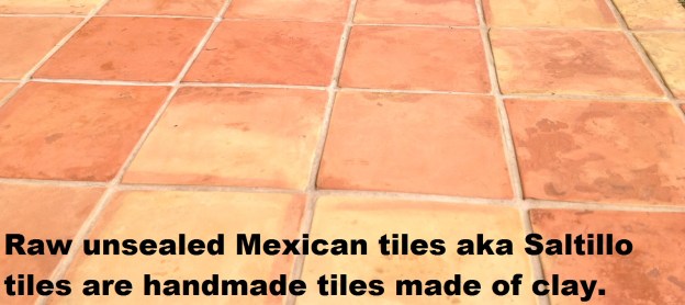Mexican Tile Renew Project in SouthGate Sarasota Fl Where Tile Floor Had Not Been Refinished in 30 Years. Saltillo or Mexican tile is a relatively weak and highly absorbent tile. If not coated with a topical sealer it will wear from normal foot traffic and absorb anything spilled onto it right into the tile.